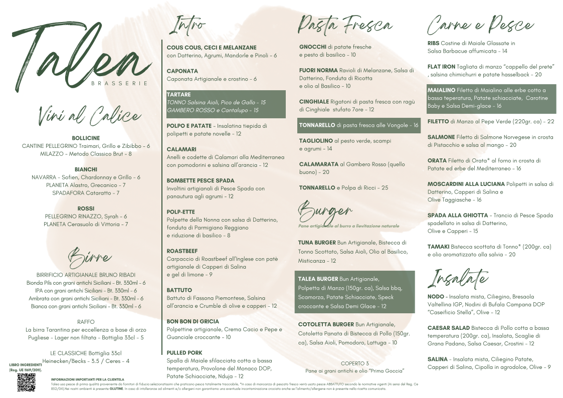 Welcome to TALEA Brasserie, a delightful culinary gem nestled in Caltanissetta, Italy. This restaurant excels in combining rich Italian tradition with fresh, local ingredients, creating a dining experience that feels both innovative and authentic. At TALEA, I was particularly impressed by their homemade pasta offerings, like the Gnocchi di patate fresche e pesto di basilico and the flavorful Tonarello alle Vongole. The expertly prepared meat options, including the Costine di Maiale glazed in smoky barbecue sauce, deliver a satisfying depth of flavor. The ambiance strikes a perfect balance between elegance and comfort, making it ideal for both relaxed hangouts and special occasions. With attentive service and thoughtfully crafted dishes, every meal becomes a memorable experience. I'm eager to return and explore the unique local beers and the delectable desserts, such as the pistachio granita. TALEA Brasserie is truly a must-visit culinary destination.